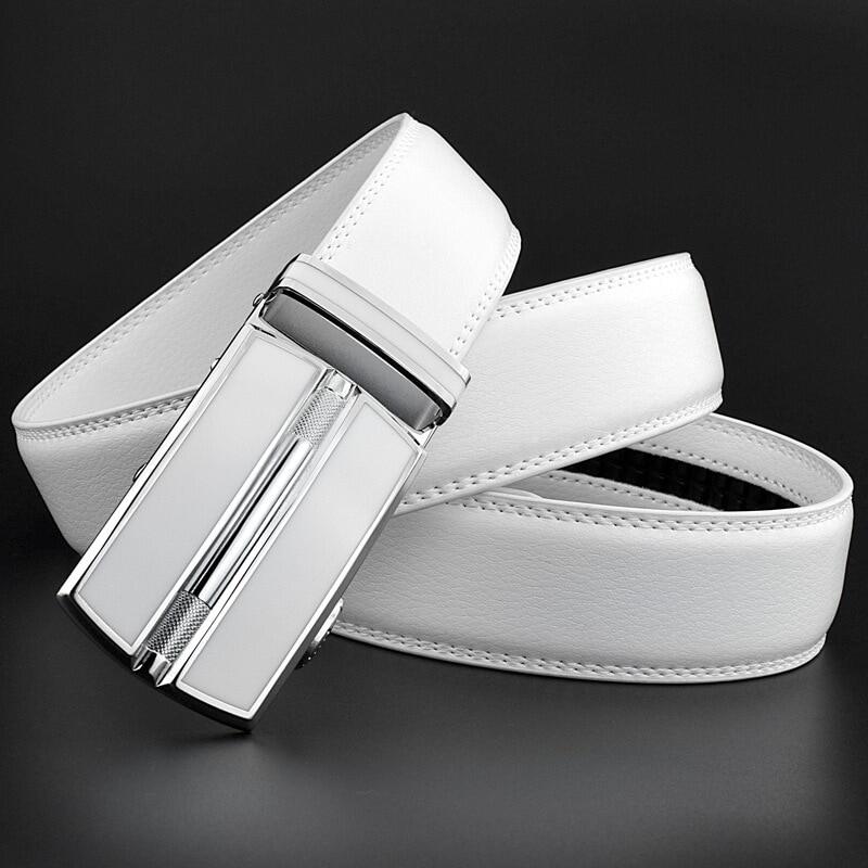 CEXIKA White Plus Size LONG Men Leather Belt 130 140 150 160cm Real Cow Original Genuine Leather Automatic Buckle Width Men Waist Straps for Jeans