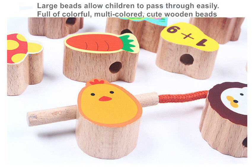 Moulty Wooden Lacing Beads for Toddlers, Fine Motor Montessori Toys for Toddlers 2 3 4 Years Old, Wooden Toys Animals Fruits Vegetables for Kids,Preschool Educational Activities Gift for Boys Girls