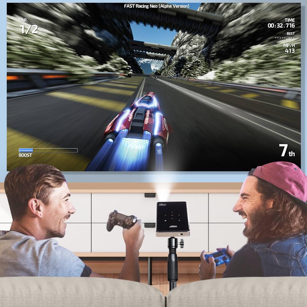 The projector uses DLP display technology,HD 4K decoding with 200 inch giant screen.