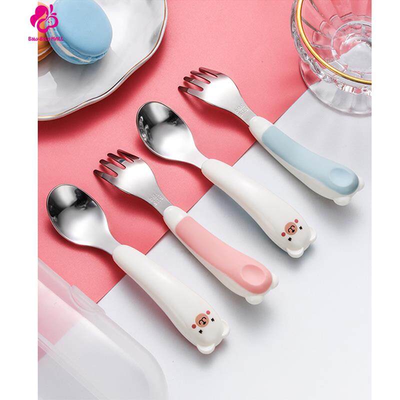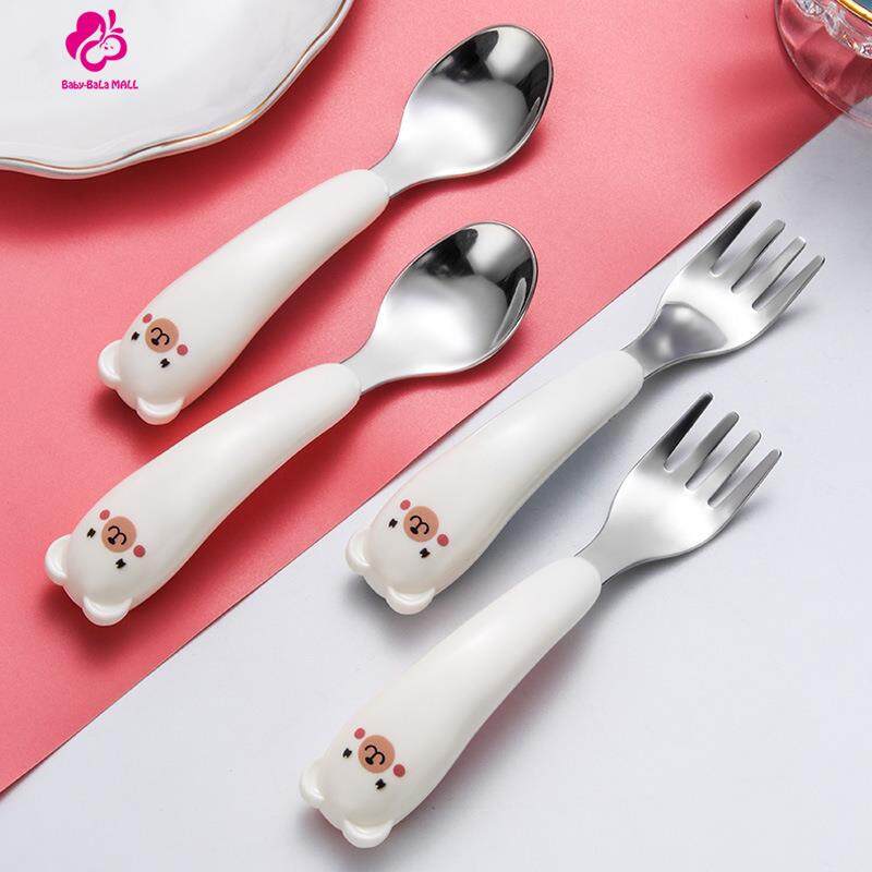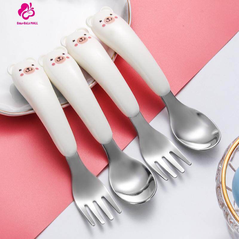 Baby-Bala Cartoon Pattern Baby Children Kids Spoon and Fork Set Flatware Stainless Steel Baby Eating Training Utensils