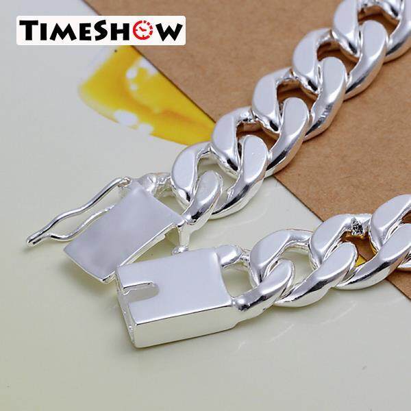 TimeShow New Fashion Jewelry 925 Sterling Silver 10MM Flat Side Chain Bracelet For Unisex Man Women Gift