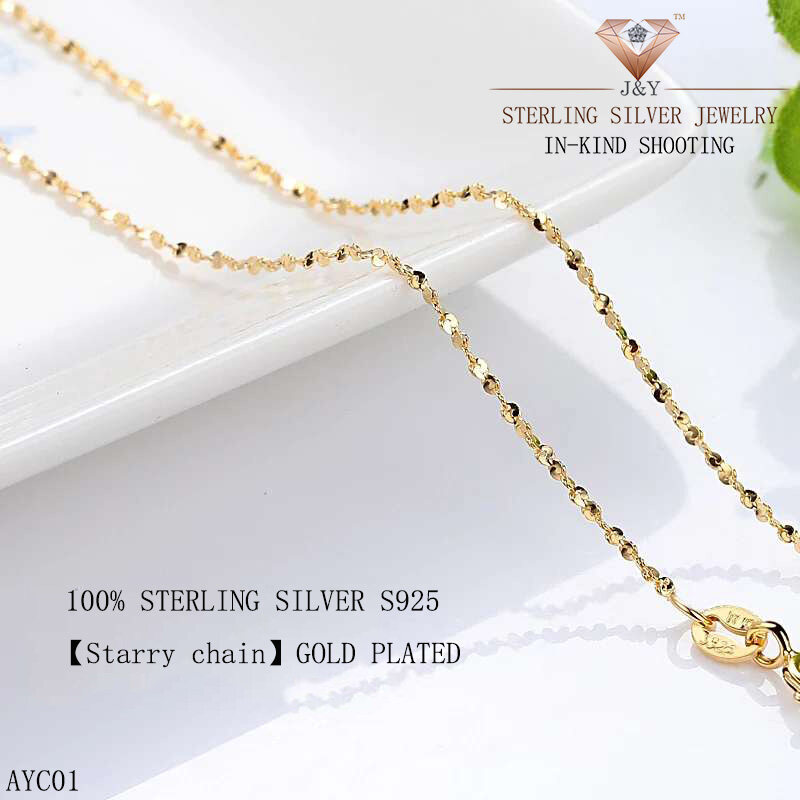 ✨J&Y SILVER✨【In Stock】100% Sterling Silver S925 Necklace Chain Different Design/Length Gold plated Jewelry Gift 09