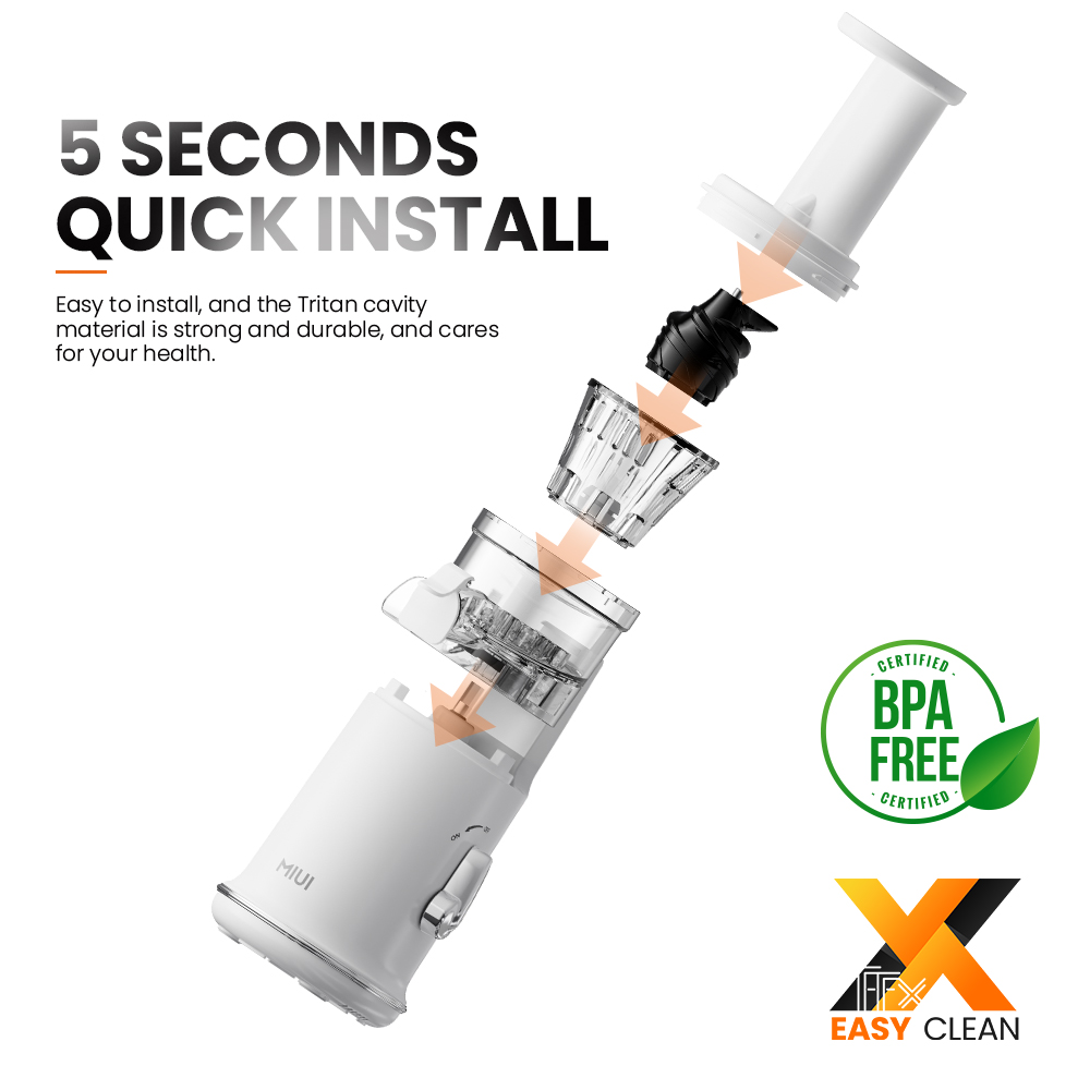 MIUI 2022 New Slow Juicer Petit Design with MINI FilterFree X (FFX) Esay Clean Technology,German GS standard, BPA free