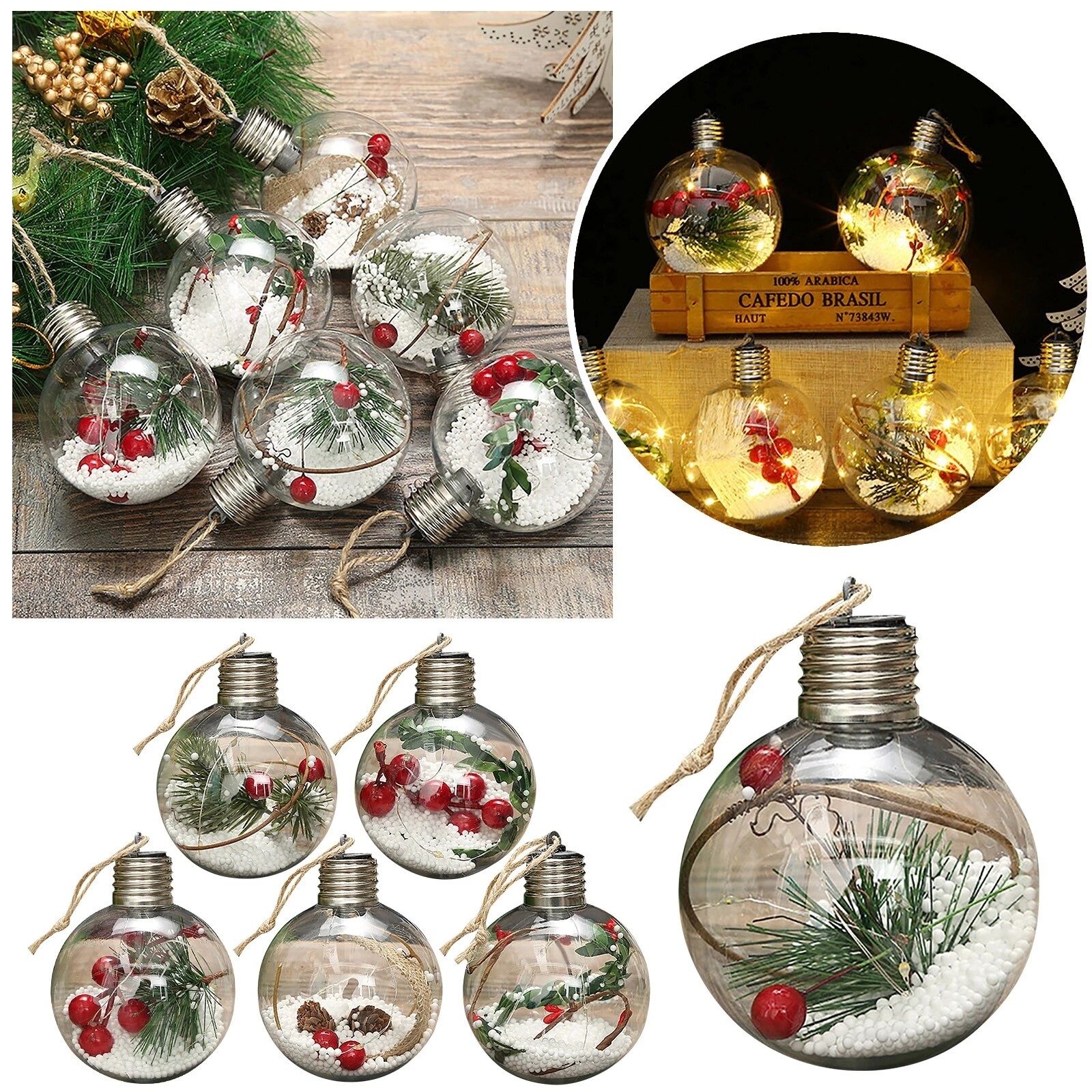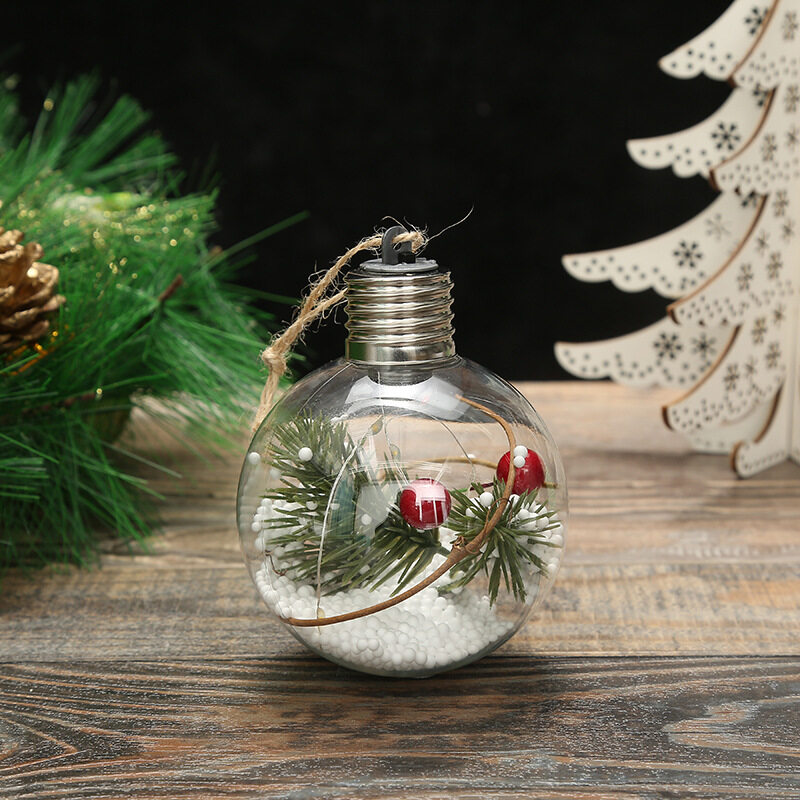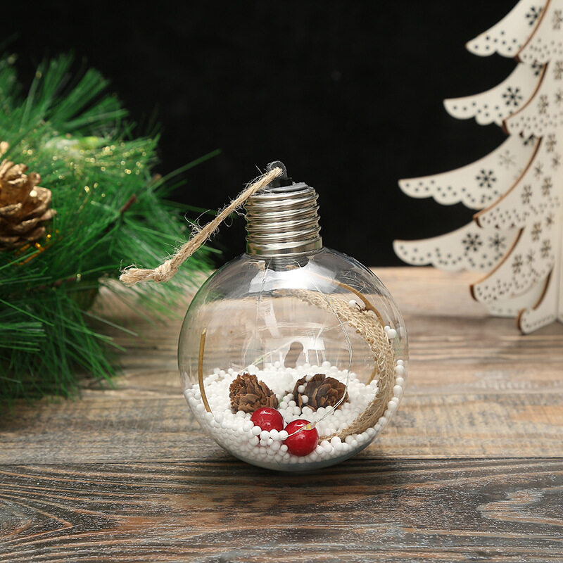 8cm Transparent DIY Christmas Tree Hanging Ball Acrylic Clear Xmas Ball LED Ball Ornament Gift Holiday Wedding Party Decor