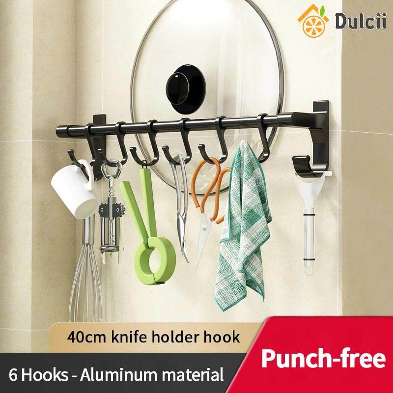 Dulcii 1PCS No Drilling Space Aluminium Kitchen Hooks Rack Multifunction Wall Mount Kitchen Shelf Utensil Holder With Hooks Mug Storage Kitchen Tools Holder Wall Mounted Kitchen Organizer
