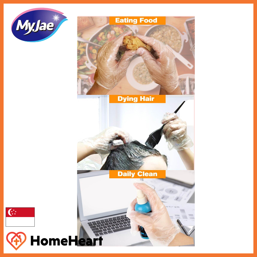 MyJae PE Disposable Gloves - (3 Pack, 300 Pieces) - Non Toxic, Thick, Leakproof With Ribbed Design For Added Friction