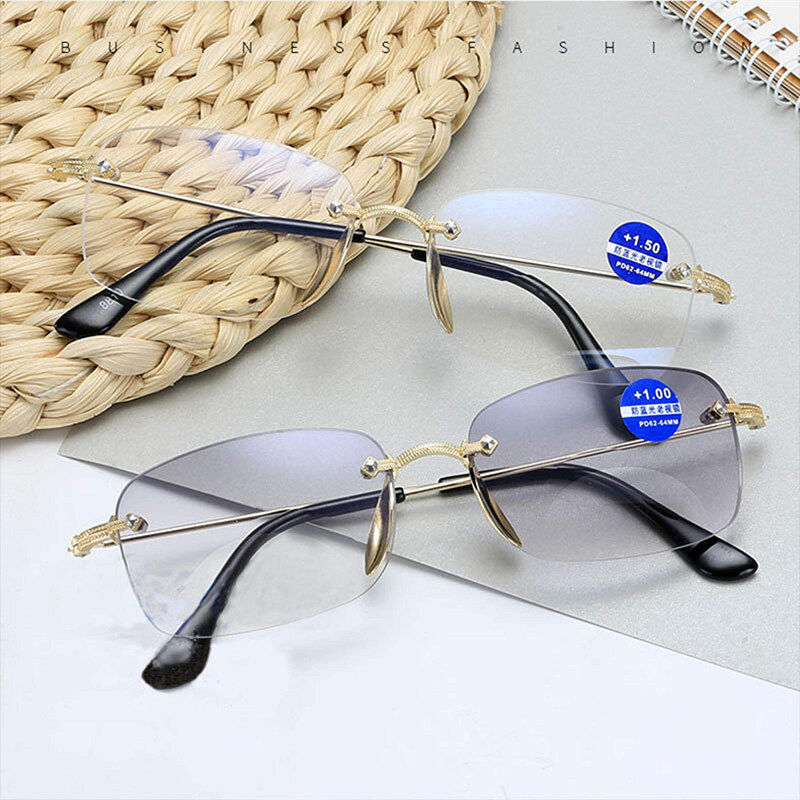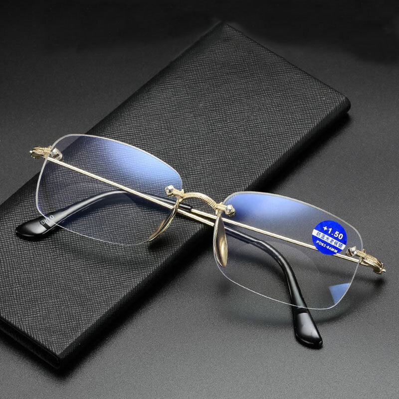 Anti-Blue Light Bifocal Reading Glasses Both Far and Near Progressive Multi-Focus Reading Glasses Frameless Trimming Flat High Quality Eyeglasses PTQ