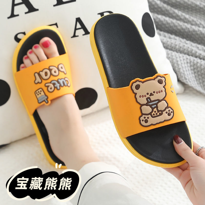 Women House Slippers Summer 2022 Popular Comfortable Non Slip Student Girl Cartoon Cute Bear Soft Sole Sandals Bathroom Trend Female Slippers