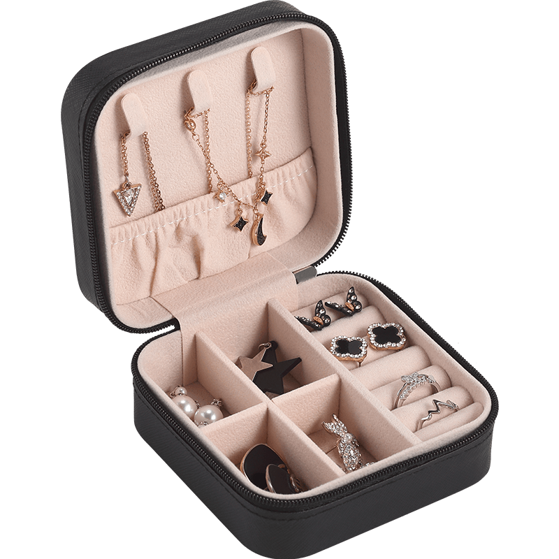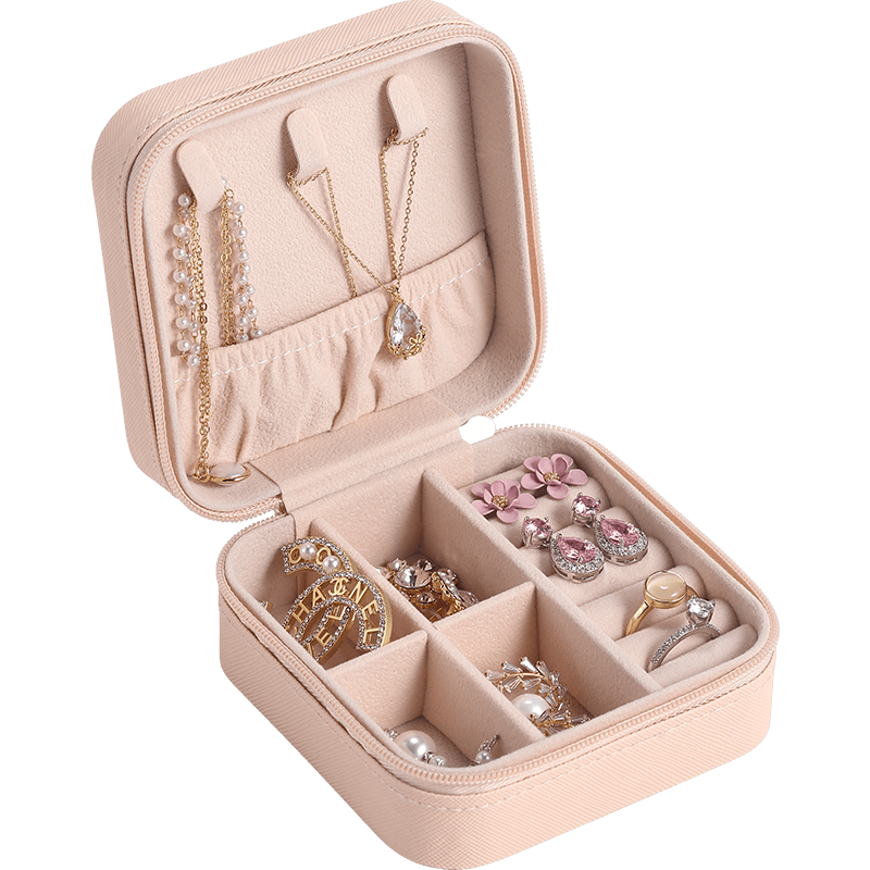 Charming Spot Mini Jewellry Storage Box Zipper Portable Travel Jewelry Box Velvet Jewelry Organizer