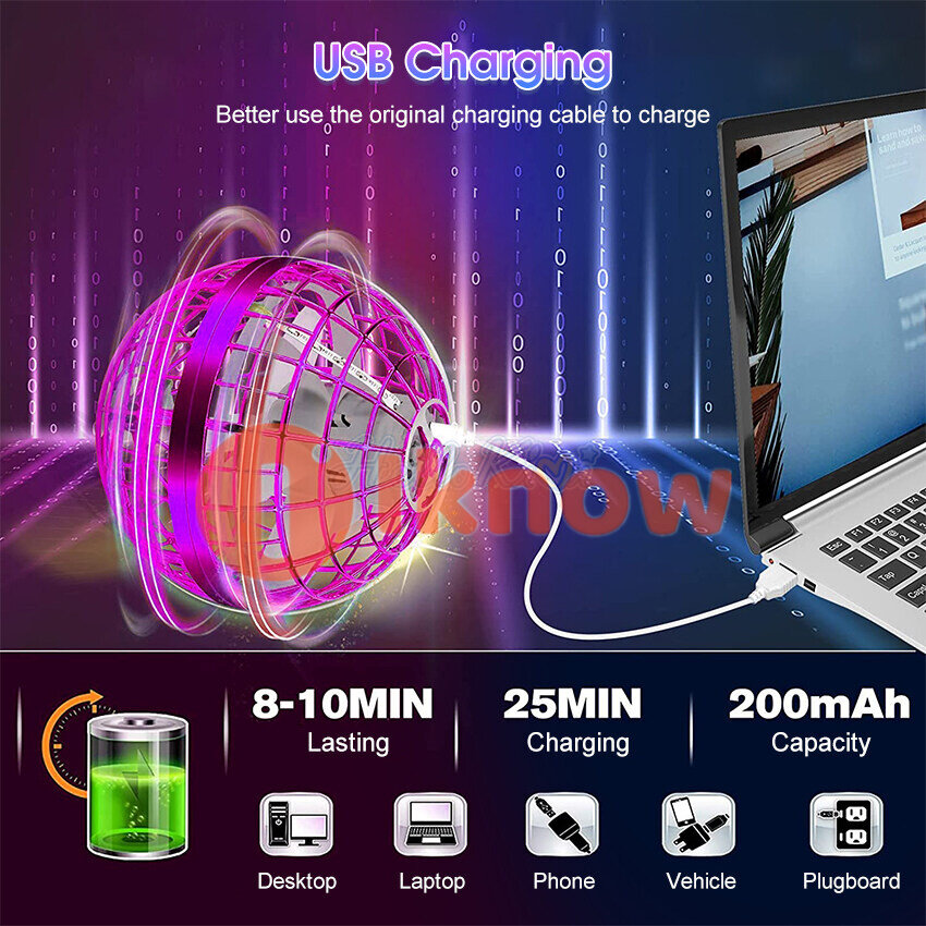 I know Flying Orb Ball, 2022 Upgraded 360° Rotating Boomerang Hover Ball with LED Lights, Flying Mini Drone Ball That Comes Back to You, Cool & Safe Rechargeable Fly Ball Toys for Kids Indoor Outdoor