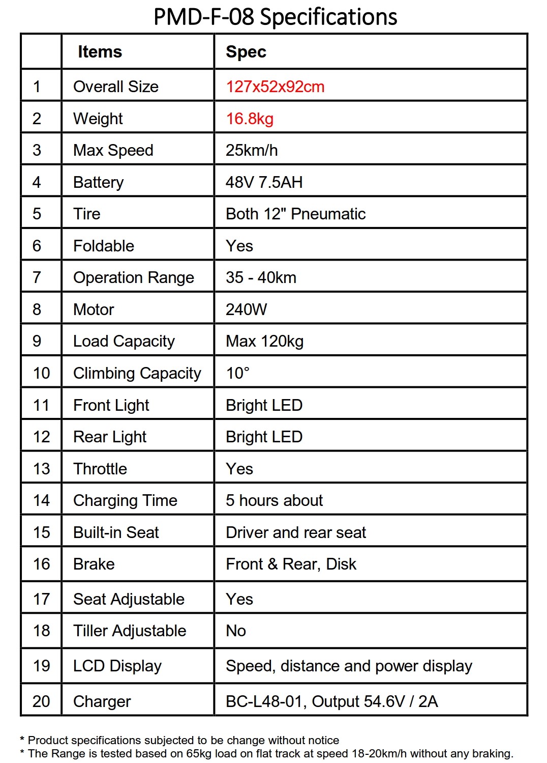 ?Battery of PMD-F-08 is only one option, 48V7.5AH, according to LTA requirement.