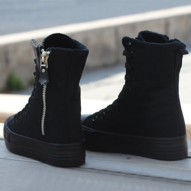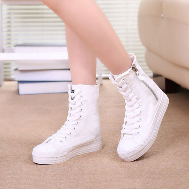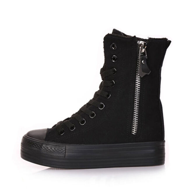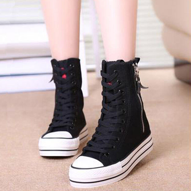 Korean Style Fashionable Spring and Autumn Student Canvas Shoes Women Ulzzang Versatile High-Top Elevator Platform Shoes 776 Middle Boots