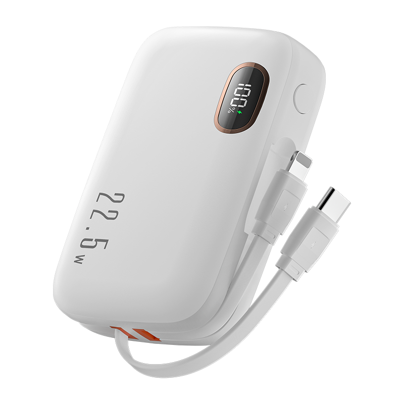 KUULAA 10000mAh Power Bank Mini PowerBank Portable Charger PD Fast Charging Built in Two Cables Type C L Compatible for iPhone 15 14 13 12 Huawei Xiaomi Samsung