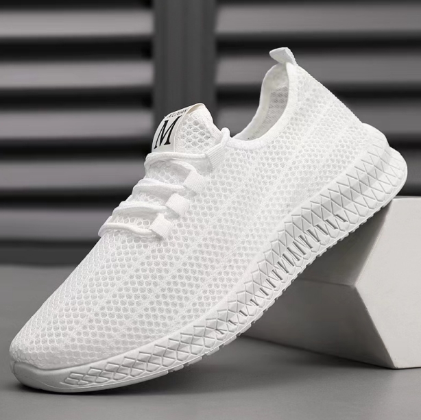 Mesh Surface Shoes Men's Summer Breathable Thin Mesh Surface Hollowed Large Mesh Men's Shoes Casual Running Black Flyknit Sneaker