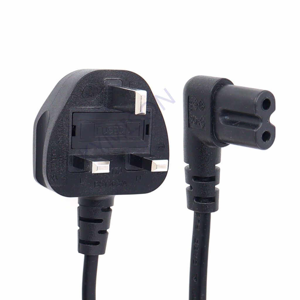 UK 3 Prong Male Plug To IEC C7 Figure 8 Right Angle Female Power Adapter Lead Cord Singapore Malaysia Extension Cablefor TV Printers Cameras PS4 PS3