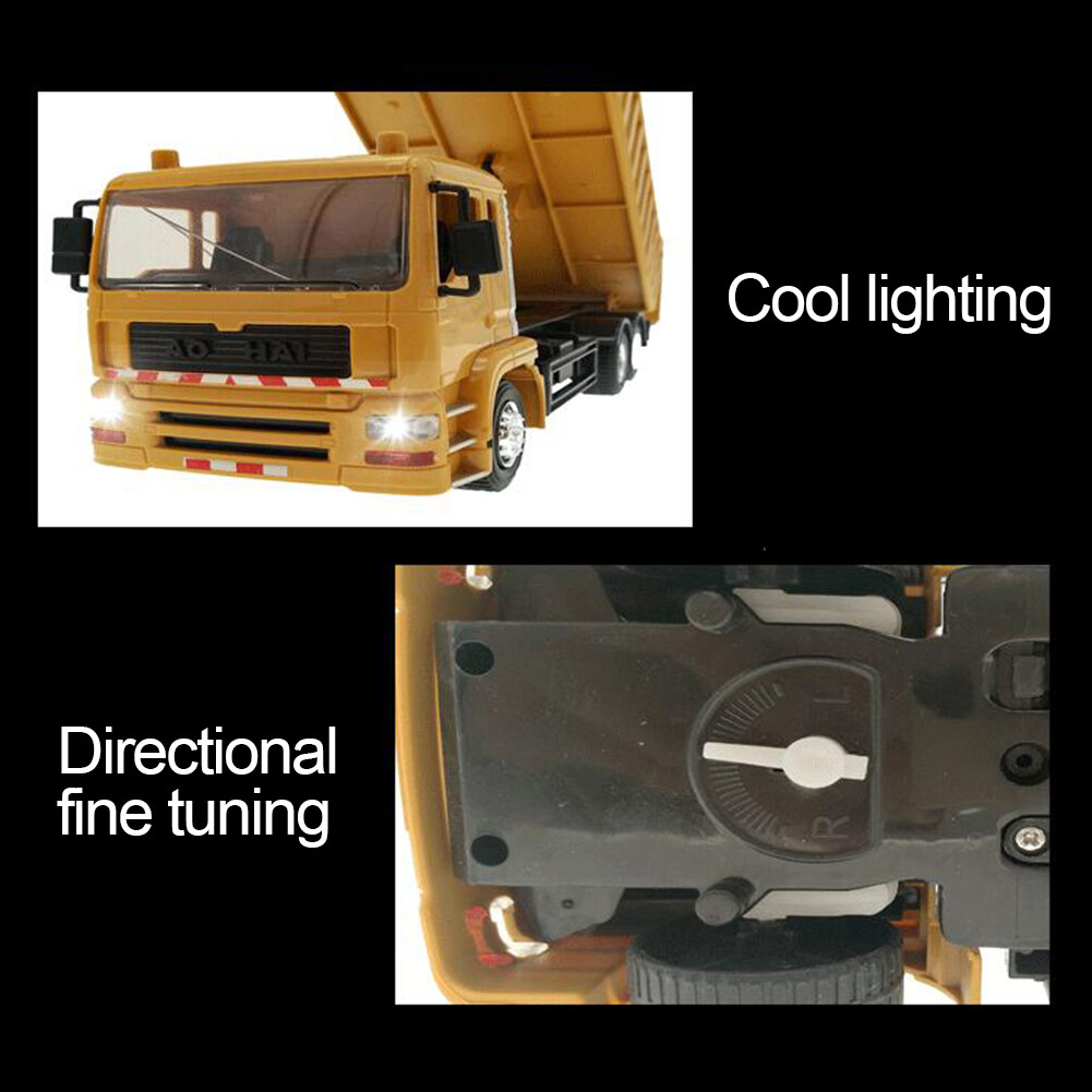 Bafada【Ready Stock】8-Channel USB charging RC cars RC Dump Truck 2.4Ghz Remote Control RC Construction Vehicle Toys for children boys Xmas birthday gifts yellow color RC Engineering truck model Beach t