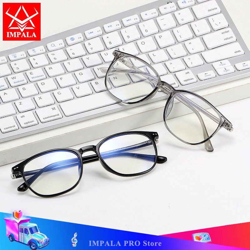 IMPALA FL1810W Fashion Anti Blue Light Eyeglasses for Men and Women Spectacle Korean Style Filter Eyeglasses Blue Light Block UV400 Anti Blue Ray Protective Eyewear With Glasses case