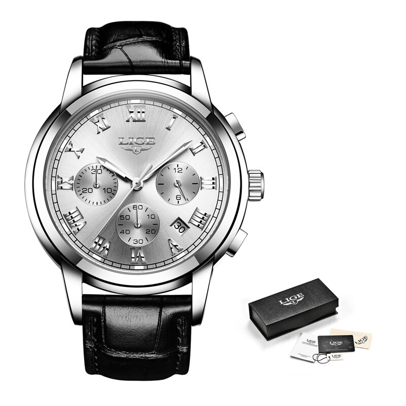 LIGE Fashion Sports Watch for Men Leather Waterproof Chronograph Luminous Pointer Wrist Watch