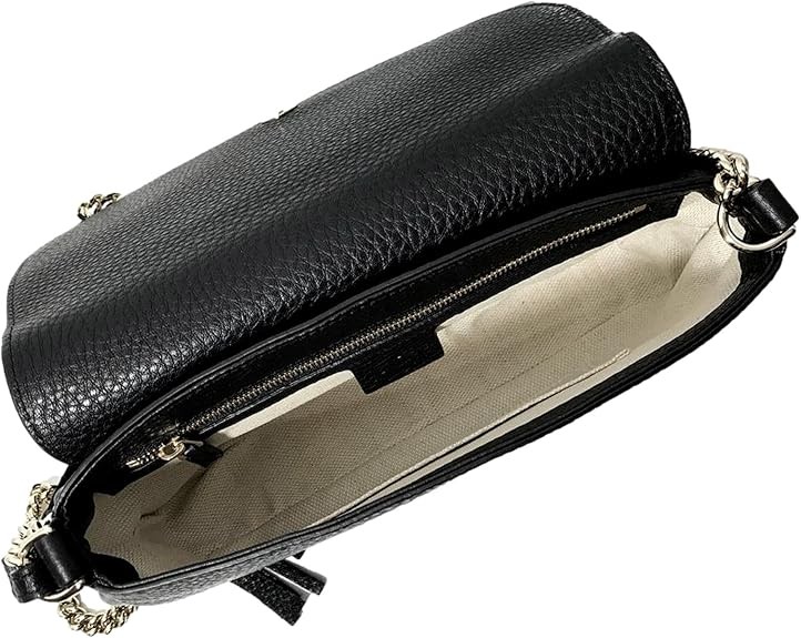Gucci Soho Leather Flap Shoulder Bag Black Gold Tassel New Authentic