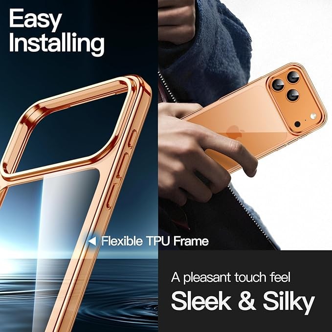 JETech Phone Case for iPhone New Pro Max 6.9 Inch, Non-Yellowing Shockproof Phone Bumper Cover, Scratch-Resistant Transparent Back (Orange)
