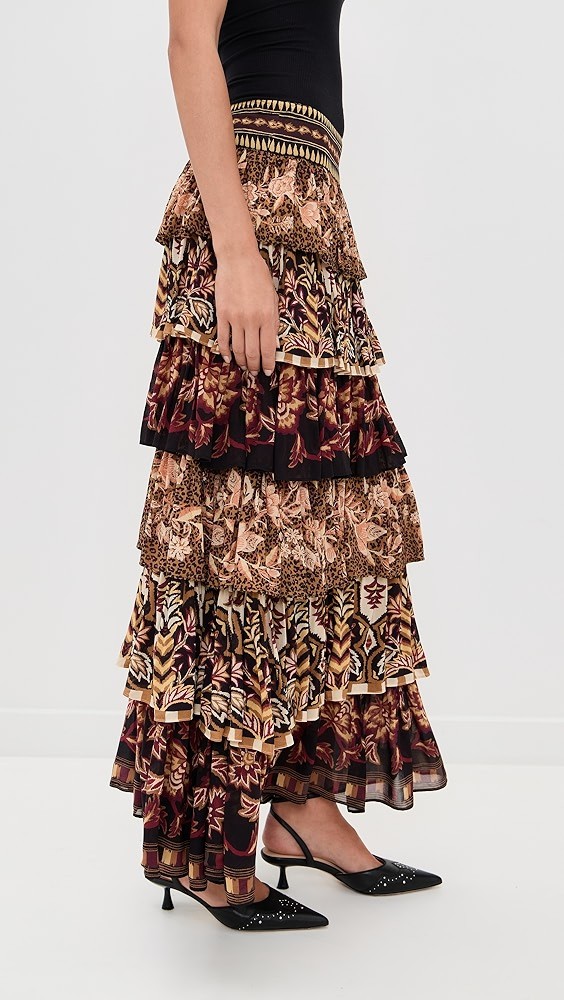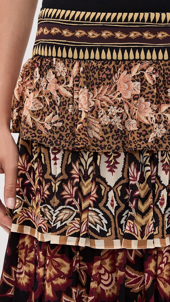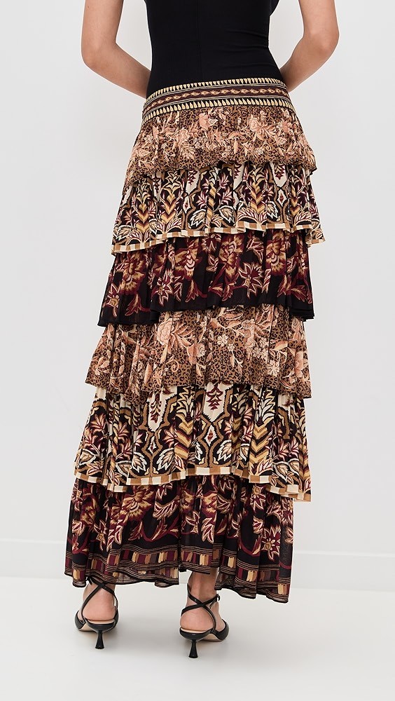 Mixed Scarves Ruffled Maxi Skirt