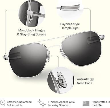 • Crafted for Excellence: A modern evolution of the iconic aviator sunglasses for women and men - built to military standards as authentic pilot-issue sunglasses. Expertly handcrafted in the USA over 6 weeks and 200 steps, these are timeless frames designed to last a lifetime.
